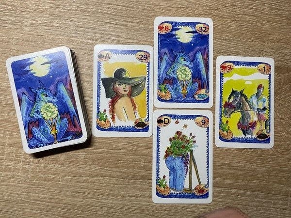 "Bei mir fliegen die Drachenkarten" sagt Petra Six, wenn ich die Karten mische brauche ich kein Stop vom Kunden, denn diese Karten zeigen mir wann sie ausgelegt werden möchten.