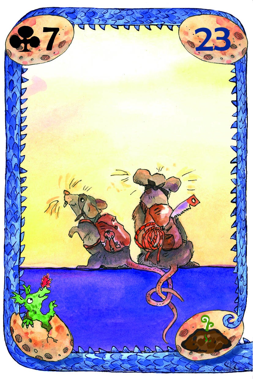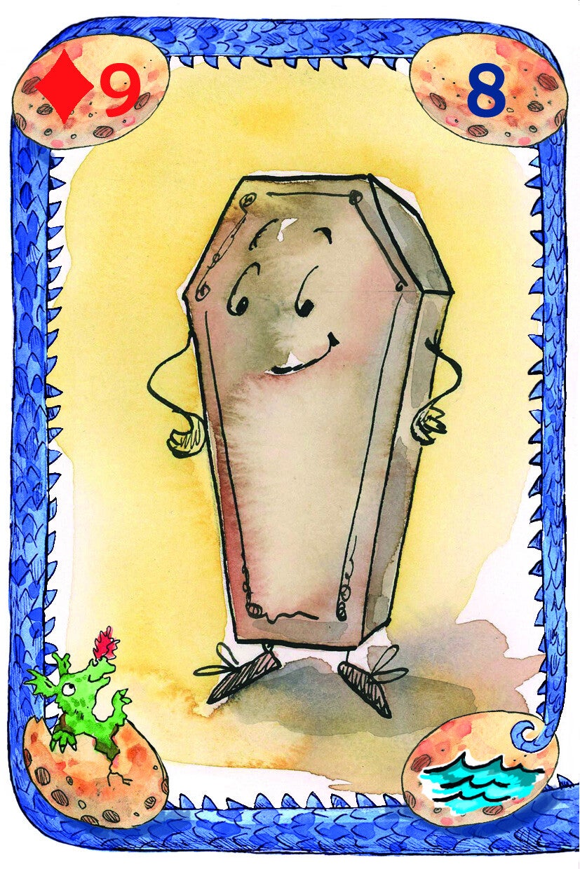 Das gechannelte Kartendeck ist besonders hell und freundlich gestaltet, sodass man diese Karten sogar Kindern in die Hand drücken kann weil alle Karten nette Gesichter haben wie z.B. ein tanzender Sarg, eine lächelnde Schlange und die netten Mäuse mit Rucksäcken für die Marschzehrung...